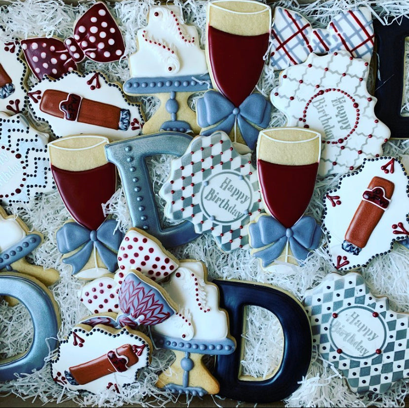 12 red wine and cigars themed sugar cookies with my signature lemon royal icing.